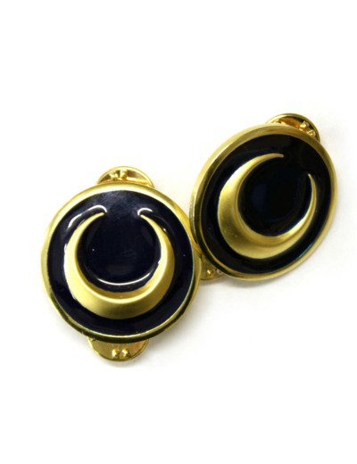 Fond bleu foncé et croissant or.