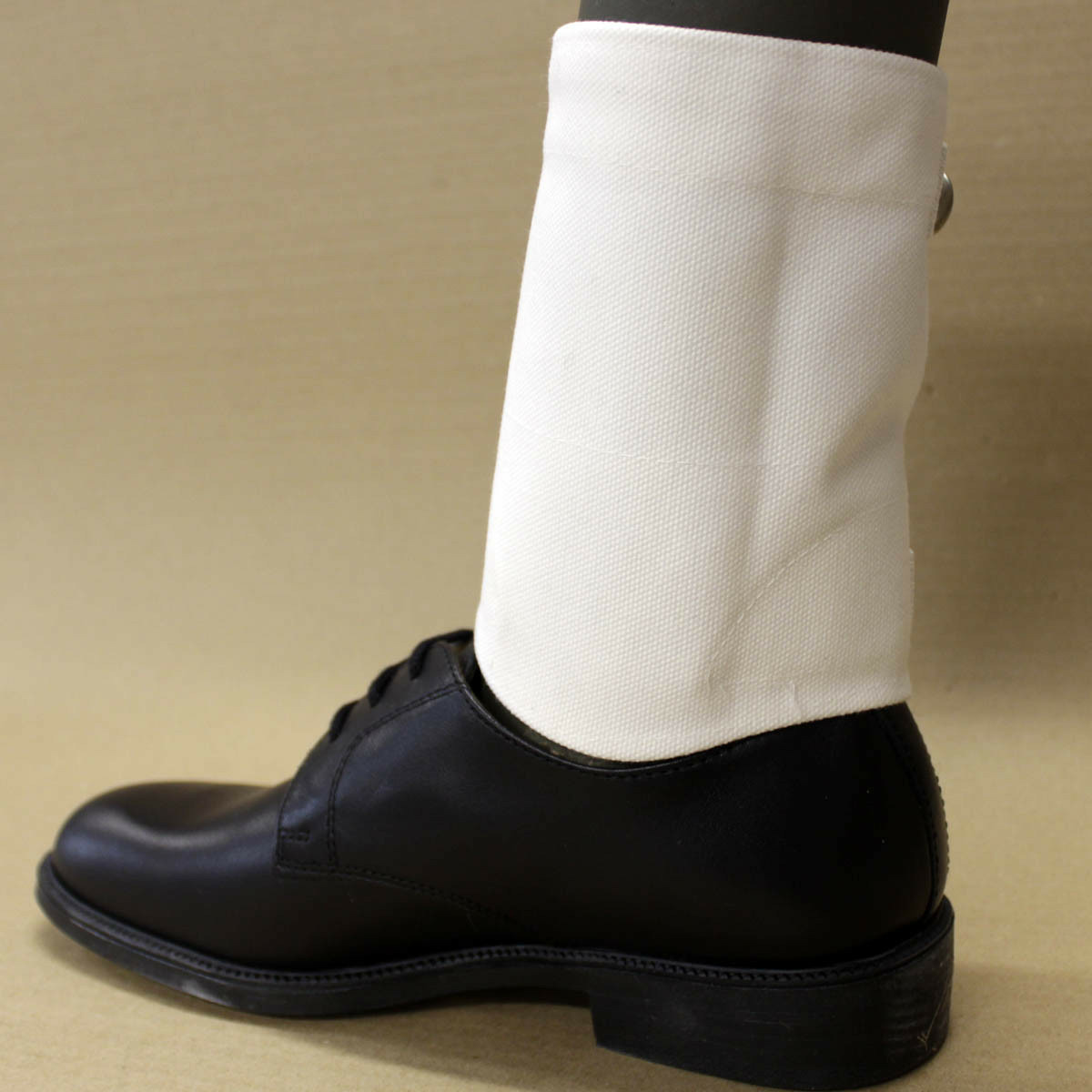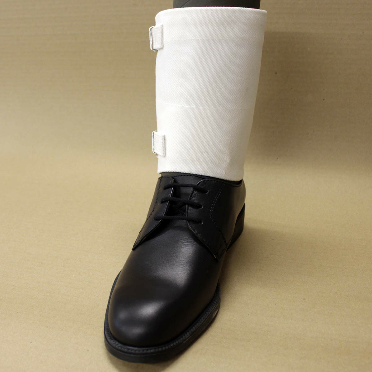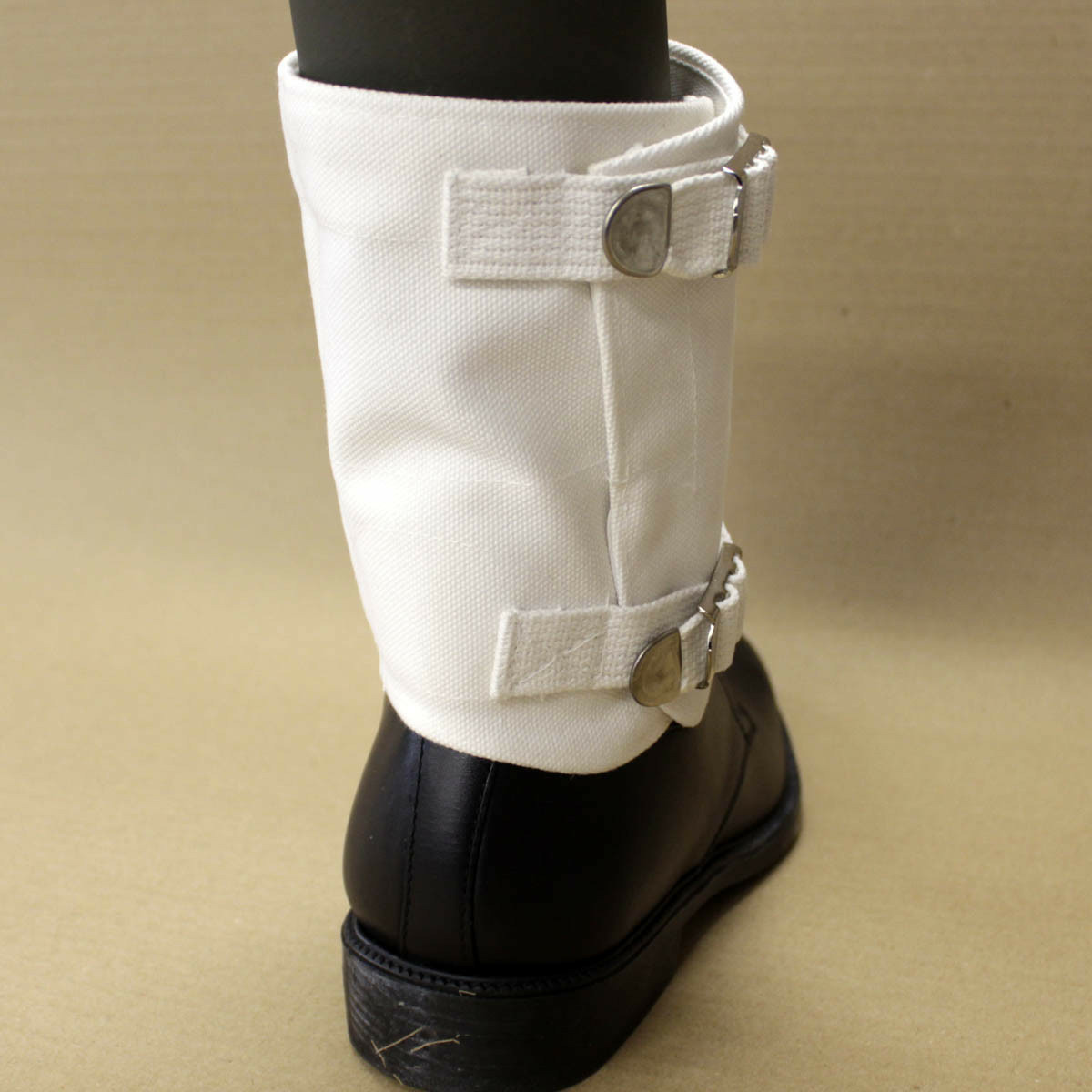 Paire de petites guêtres en coton avec 2 sangles de serrage.