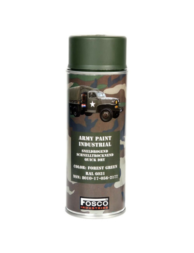 Codes RAL camouflage Théâtre Européen pour véhicules : RAL 6010 (fond vert) + RAL 8027 (ombrage marron) + RAL 9021 (cassure des angles en noir)