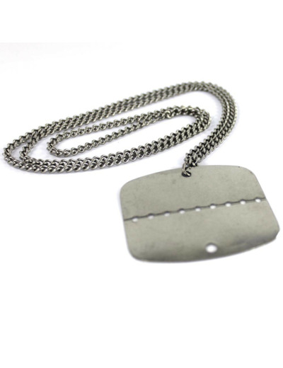 Plaque livrée montée sur sa chaîne. Précisez lors de votre commande si vous souhaitez la plaque et la chaîne séparées pour faciliter la gravure.