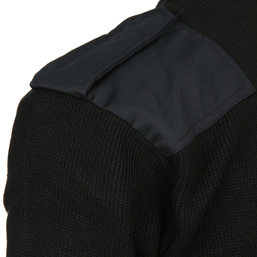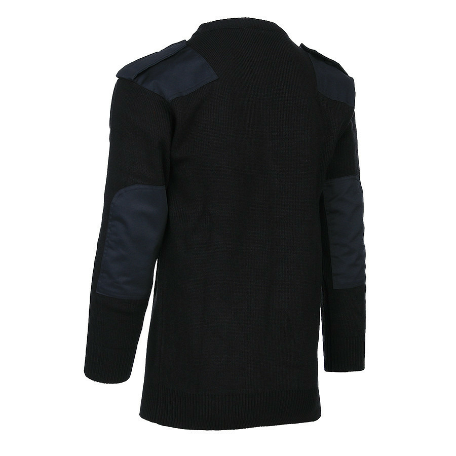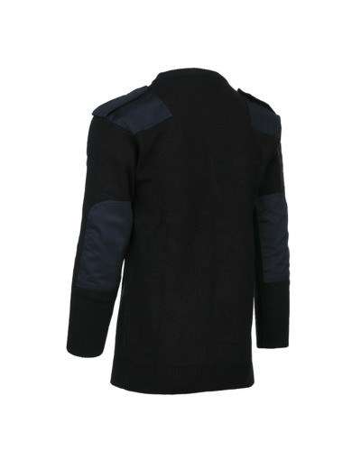 Tricot sergé avec épaulettes et renforts sur les épaules et les coudes.