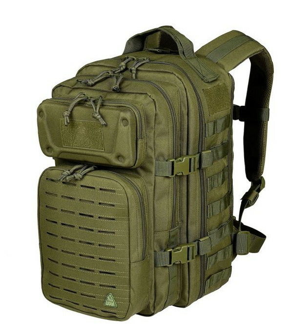 Deux compartiments sur face avant, un avec système Molle lasercut, l'autre avec coque rigide pour la protection du petit matériel sensible (téléphone, GPS, lunettes,...)