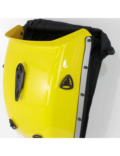 Accès au contenu par le dessus (élastique) ou par l'arrière (glissière + velcro)