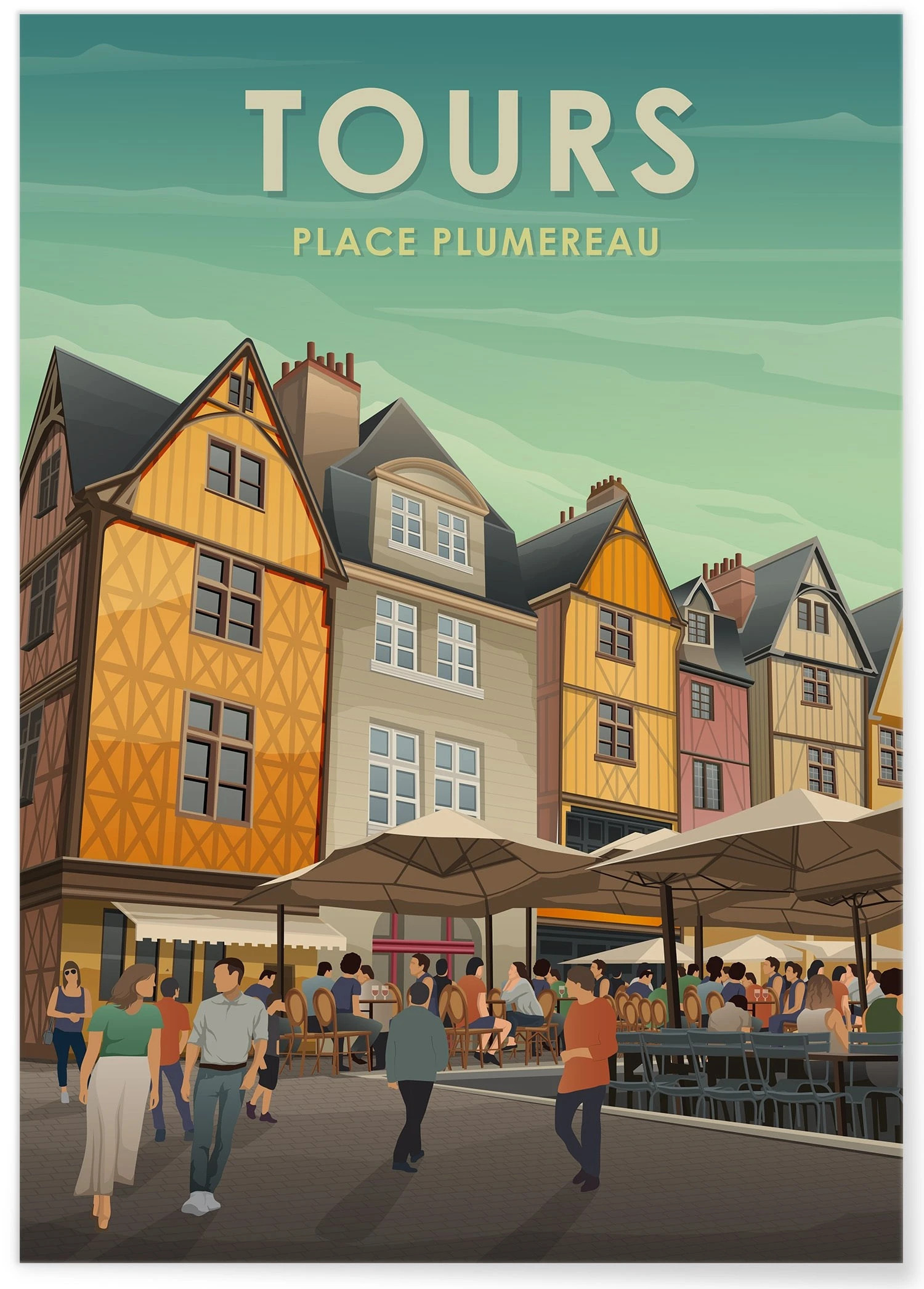 Apportez une touche d'élégance et d'histoire à votre intérieur avec notre magnifique affiche vintage et décorative de la Place Plumereau. Capturant l'essence de ce lieu emblématique du Vieux Tours, cette illustration de haute qualité est parfaite pour les amoureux d'art et d'architecture.