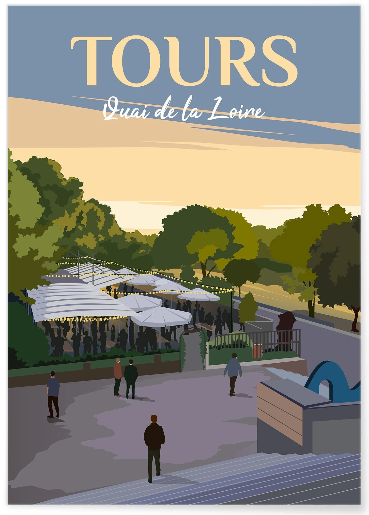 Découvrez notre magnifique affiche vintage et décorative du Quai de la Loire à Tours, illustrant la célèbre guinguette qui attire tant de visiteurs chaque été. Parfaite pour apporter une touche de charme et d’élégance à votre intérieur, cette œuvre d’art capture l’essence de ce lieu emblématique où la convivialité et la beauté naturelle se rencontrent.