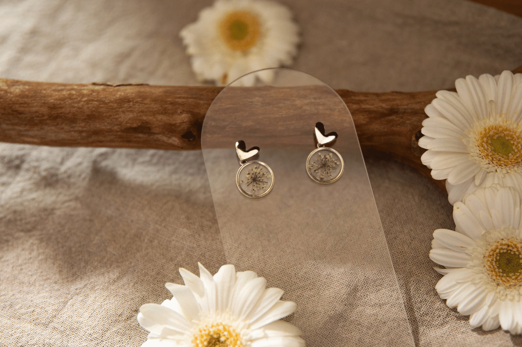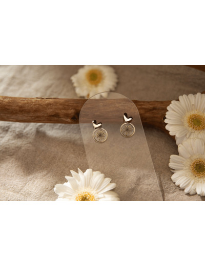 Chaque boucle d'oreille renferme une charmante fleur de carotte sauvage, capturant la beauté éphémère de la nature dans un écrin argenté.