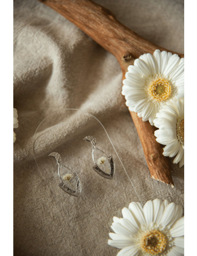 Cette ravissante paire de boucles d'oreilles argentées est une fusion entre élégance et nature.