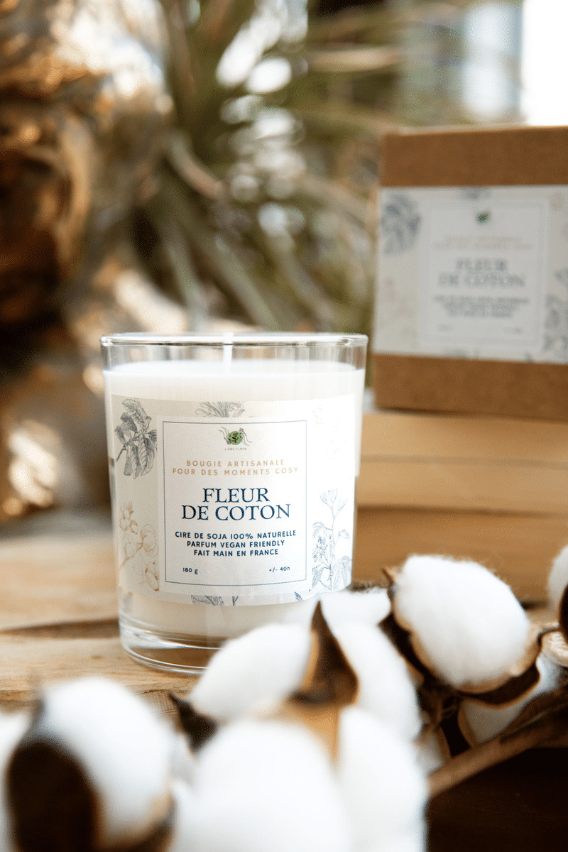 Cette bougie végétale Fleur de Coton est parfaite pour créer une ambiance relaxante et harmonieuse dans votre maison, tout en respectant l'environnement.