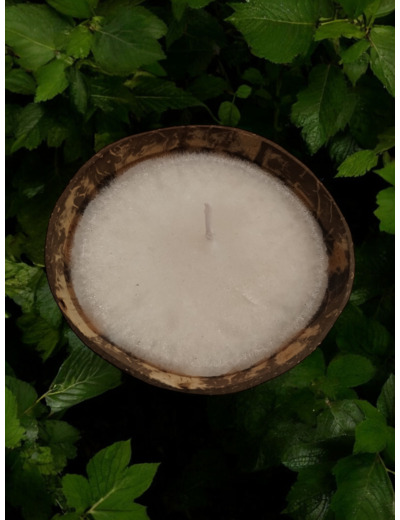 Découvrez notre bougie en coque de noix de coco, un choix à la fois esthétique et éco-responsable pour illuminer votre intérieur.
