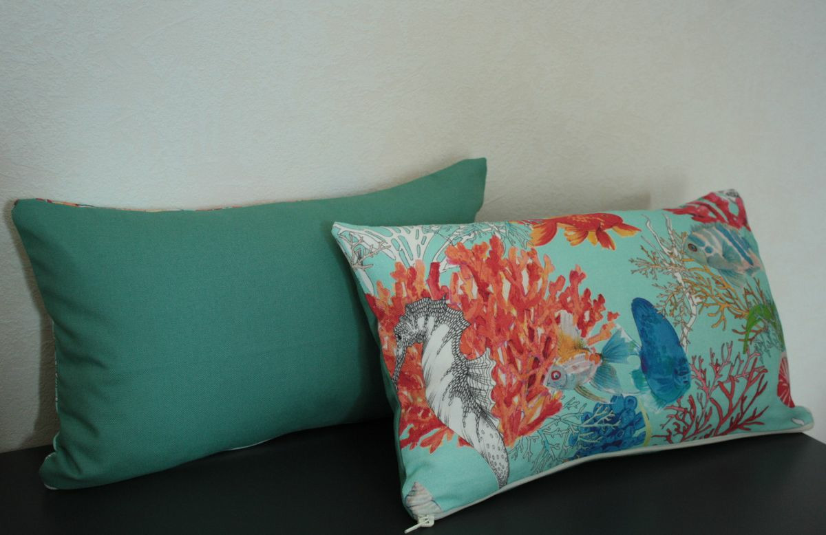 Taille du coussin 33*33 (4 modèles). Taille 23*38 rectangulaire (3 modèles).
