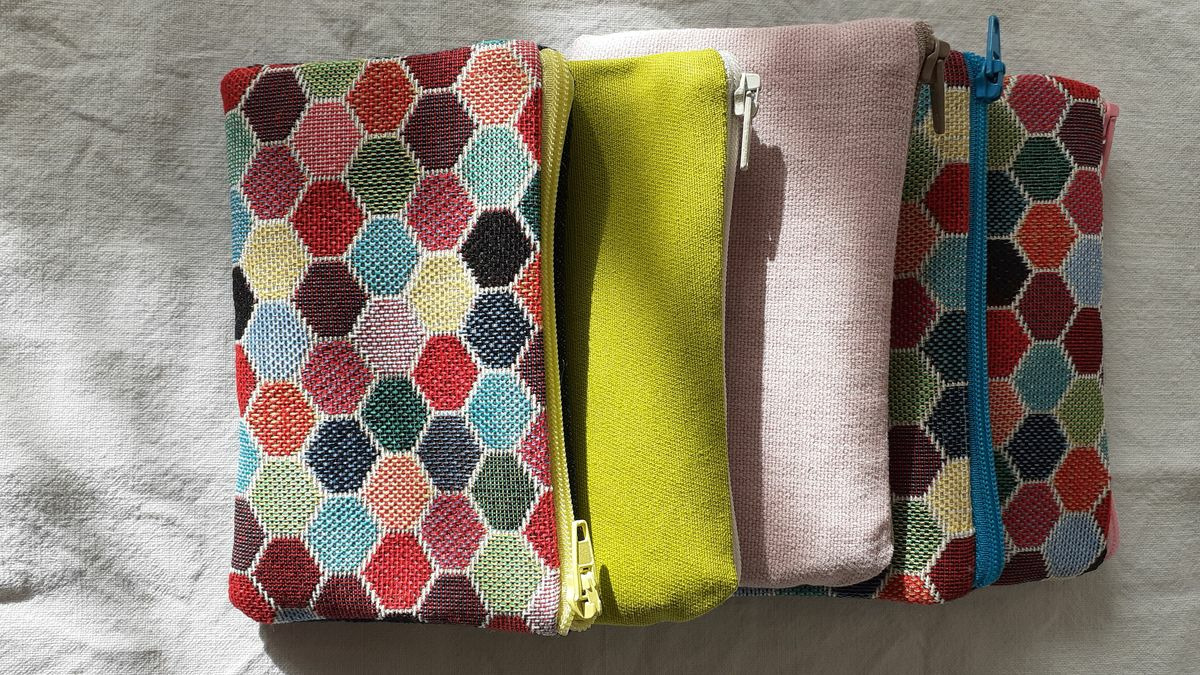 Porte-monnaie réalisés par mes soins en tissu ameublement, une face multicolore et une face unie, j'ai choisi de les créer dans des matières de qualités, avec des couleurs pep's.
