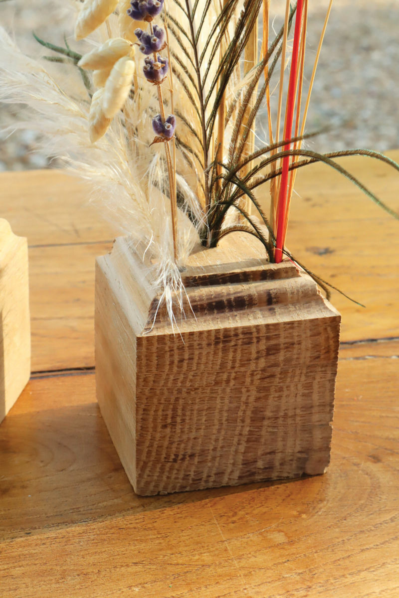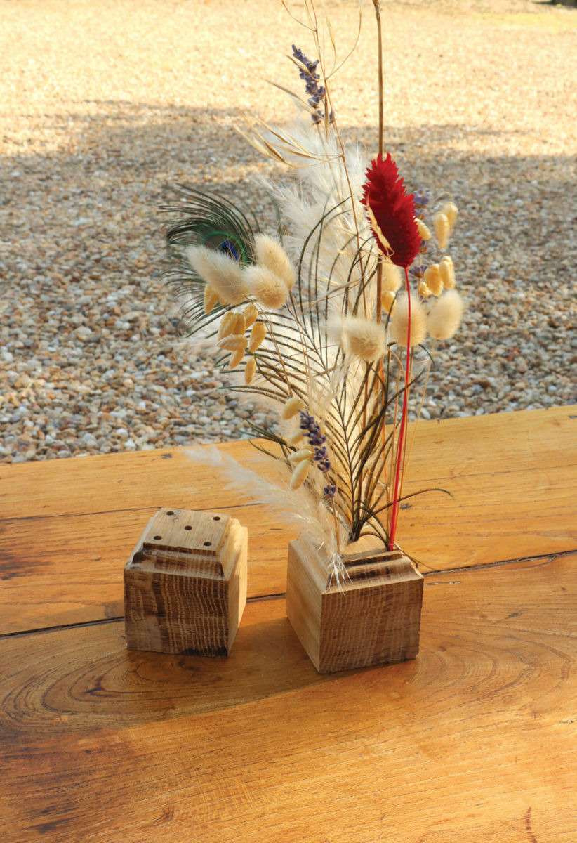 • Matière : Bois chêne recyclé & fleurs séchées