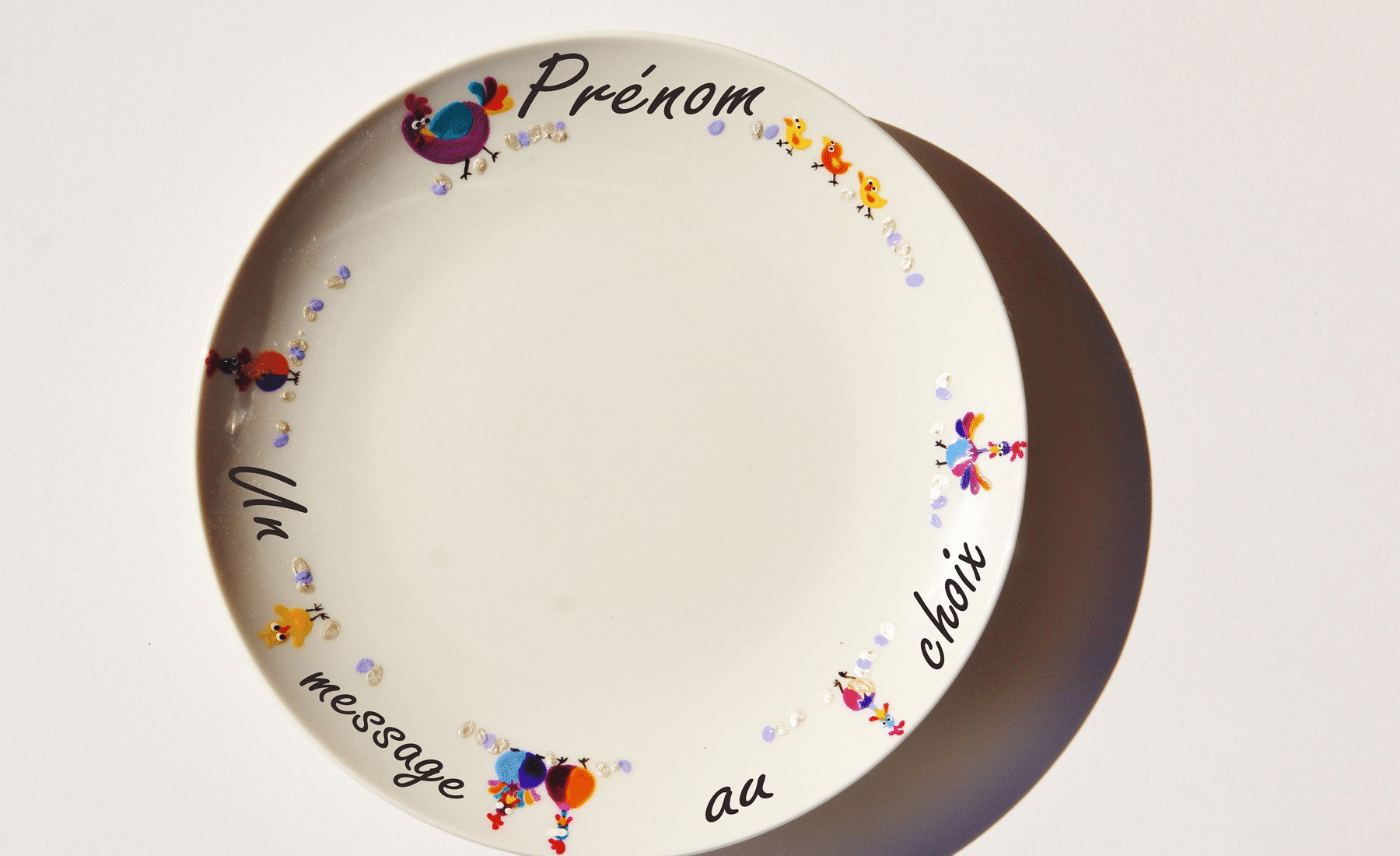 Chaque assiette est unique en son genre. Elle peut être personnalisée avec le texte de votre choix et laissera, ainsi, un souvenir indélébile à la personne à qui vous l'offrirez.