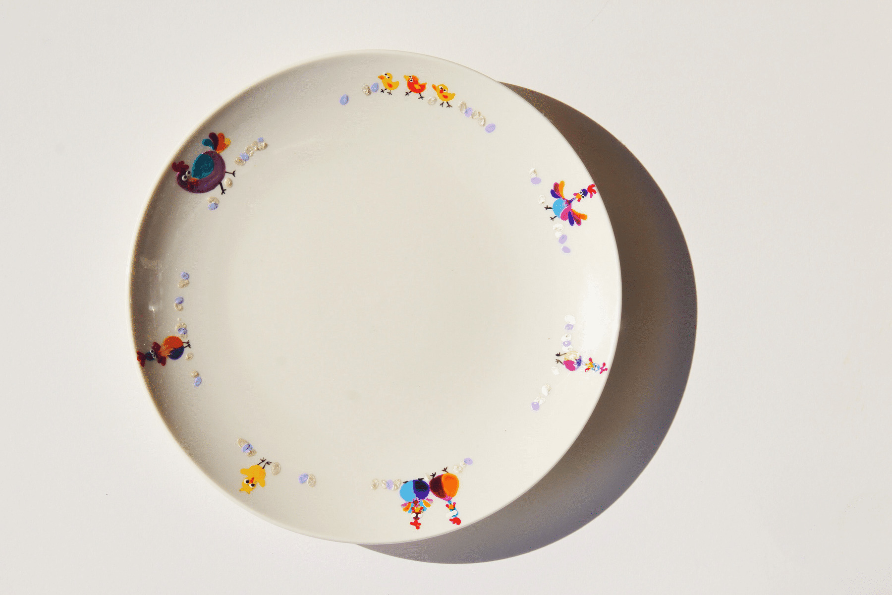 Assiette Enfant Personnalisée Et Artisanale De 19 Cm Représentant Des Petites Poules Et Poussins, Très Colorée, Signée Et Daté