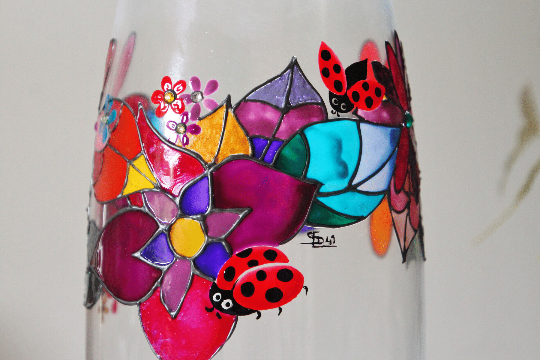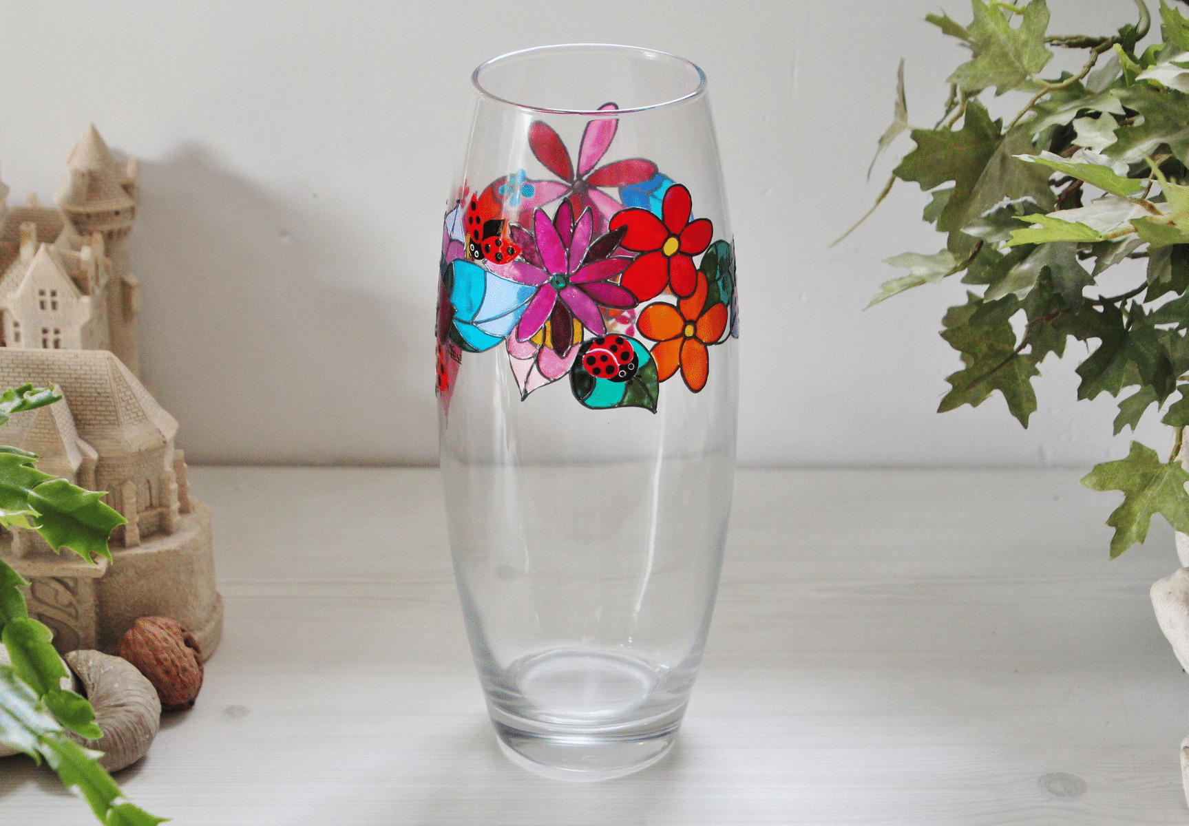 Tous les objets en verre qui vous sont présentés dans ma boutique sont décorés de façon artisanale, minutieusement peints à la main sur des thèmes très variés, pour un résultat unique.