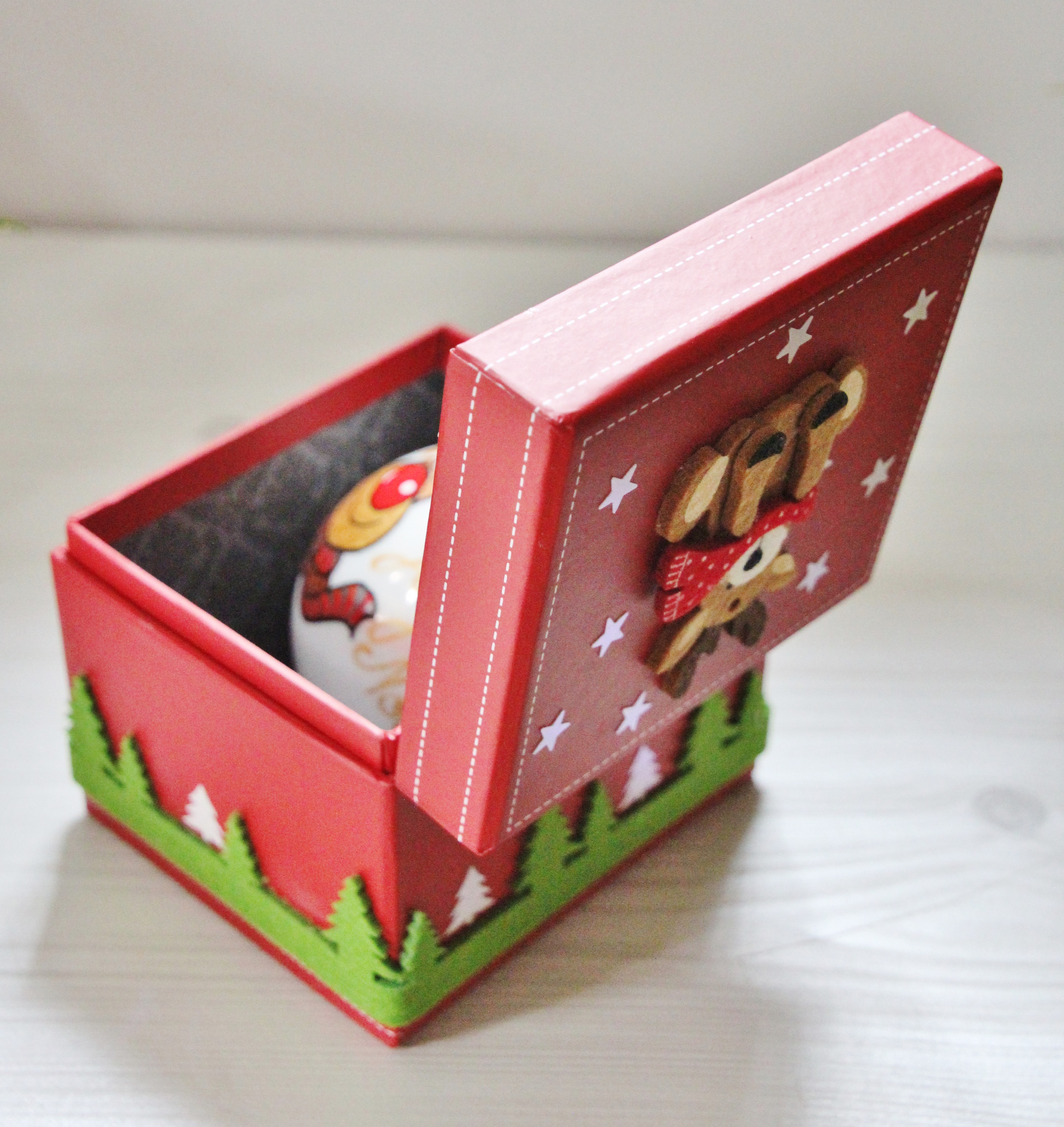 Votre boule de noël peut être mise en valeur grâce à ce joli coffret décoré sur le thème de Noël.
