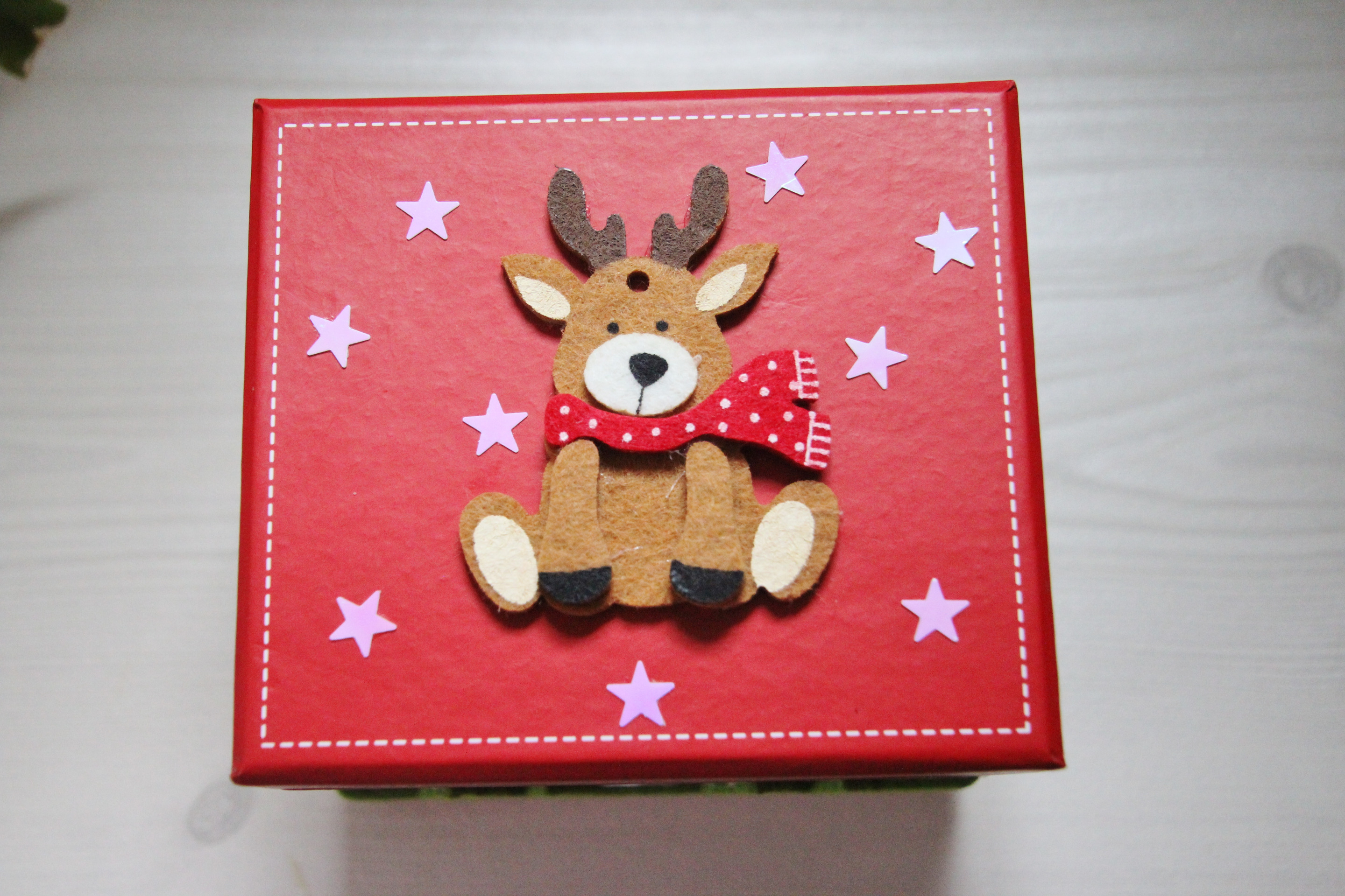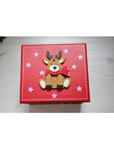 Quelle jolie idée que d'offrir votre cadeau dans une belle boite décorée sur le thème de Noël. (La boule de Noël sur la photo n'est là qu'à titre d'exemple, elle n'est pas vendue avec la boite. Ceci dit, elle peut être commandée à part, vous pourrez la retrouver en vente dans ma boutique.)