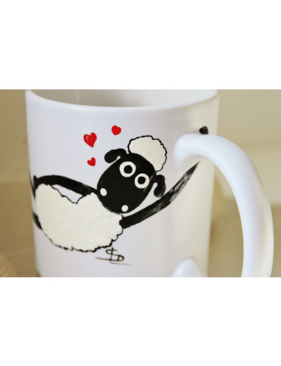 Joli Mug Peint À La Main Ou Coton Le Mouton S'accroche À La Poignée De La Tasse Un Mazagran Personnalisable Pièce Unique Et Signée