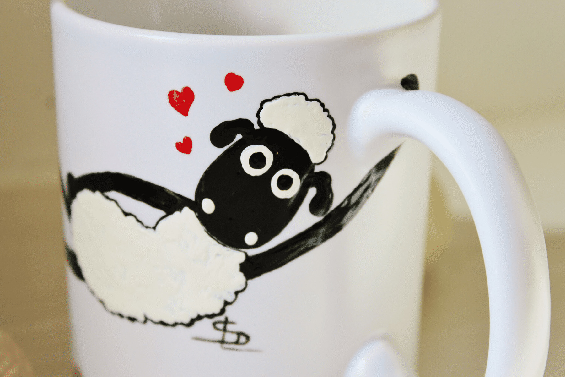 Joli Mug Peint À La Main Ou Coton Le Mouton S'accroche À La Poignée De La Tasse Un Mazagran Personnalisable Pièce Unique Et Signée
