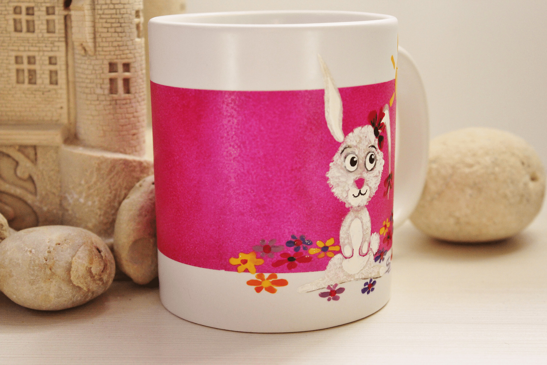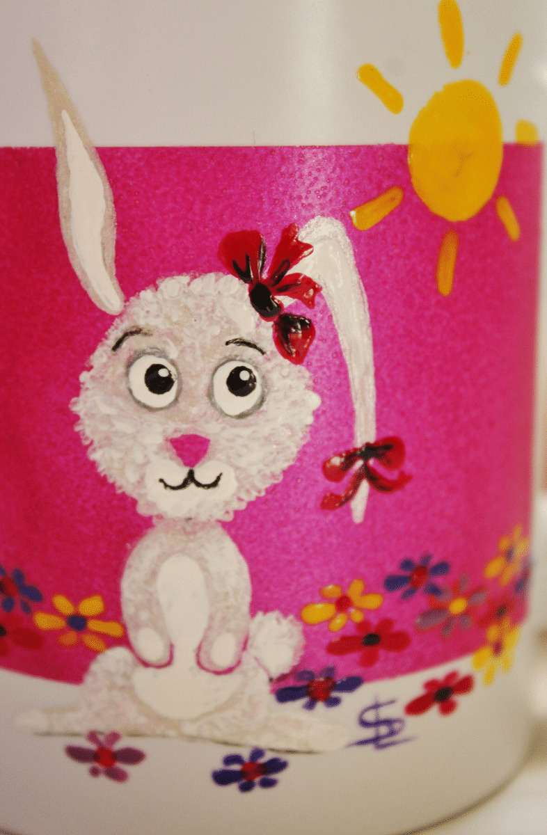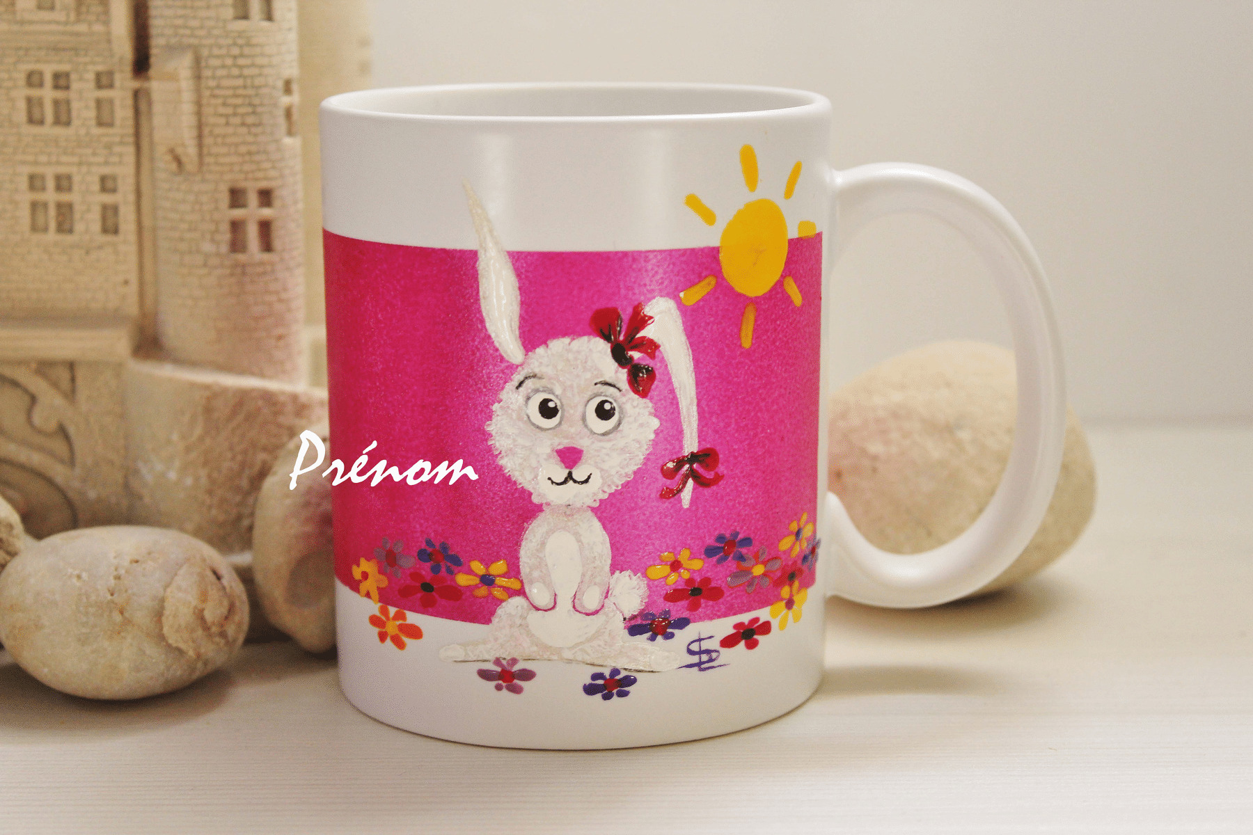 Joli Mug Peint À La Main, Sur Le Thème Des Petits Lapins. Mazagran, Tasse Personnalisable Par Un Prénom, Phrase, Pièce Unique Et Signée