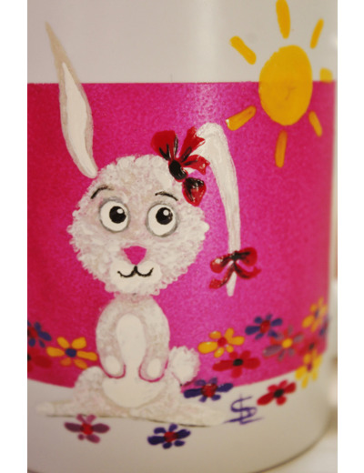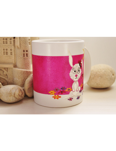 Mug, entièrement peint à la main sur le thème des lapins. Cette tasse peut être personnalisée par un prénom, des initiales ou une courte phrase. Quelle jolie idée que d'offrir cette tasse à l'occasion d'une naissance ou d'un premier anniversaire!