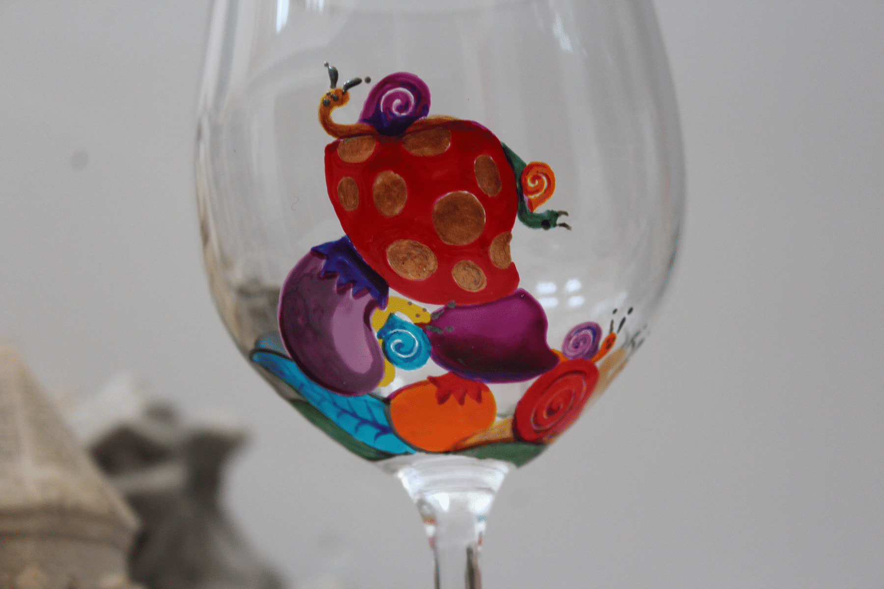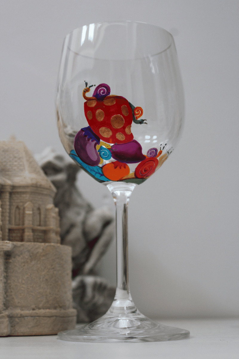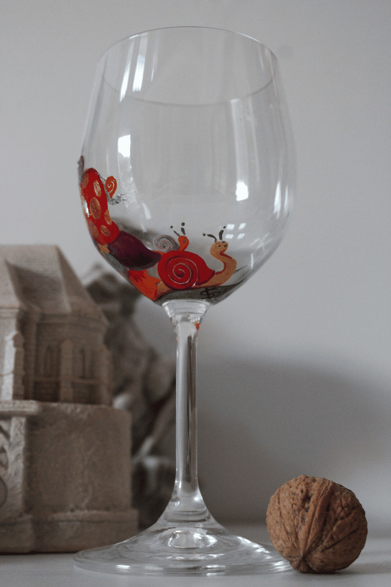 Joli Verre À Pied En Cristal De Bohème Peint Artisanalement À La Main Sur Le Thème Des Escargots Pièce Originale Et Unique