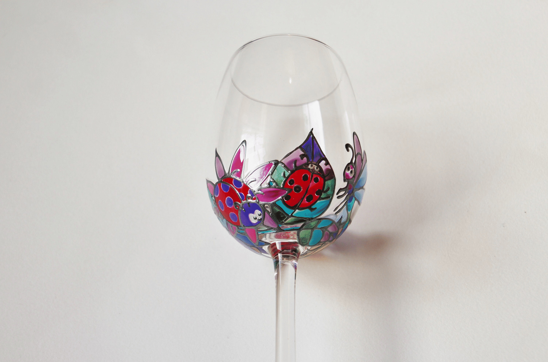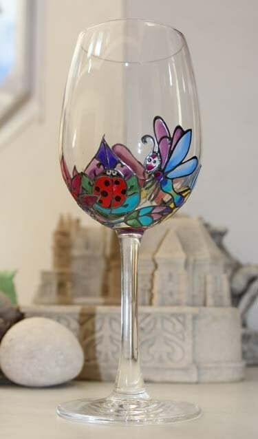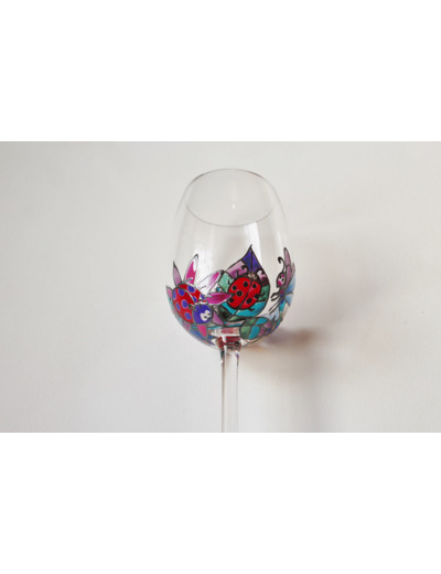 Joli Verre À Vin En Cristal Peint À La Main Sur Le Thème Des Insectes Libellules Coccinelles Et Bourdons