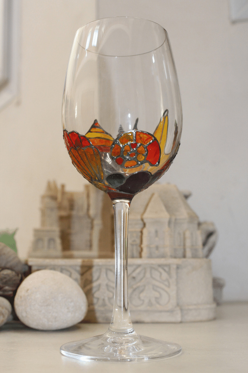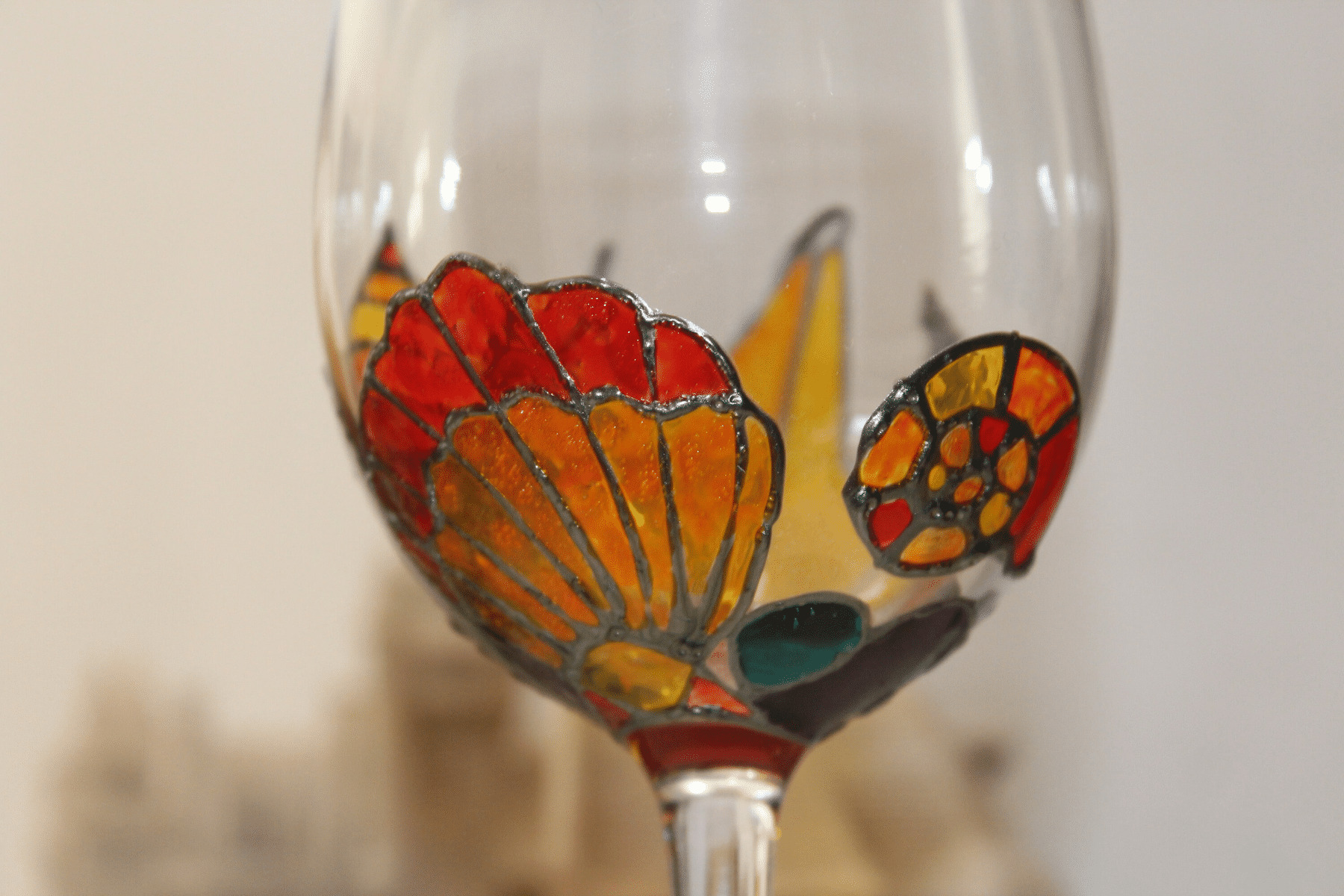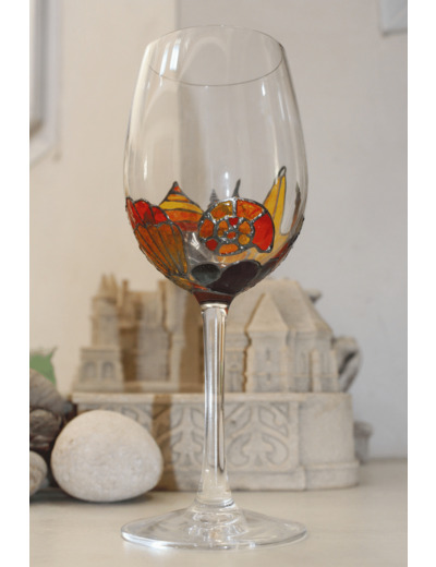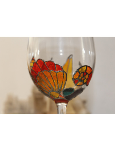 Joli Verre À Vin En Cristal Sur Le Thème Des Coquillages Peint À La Main Pièce Originale Et Unique Signée Et Numéroté