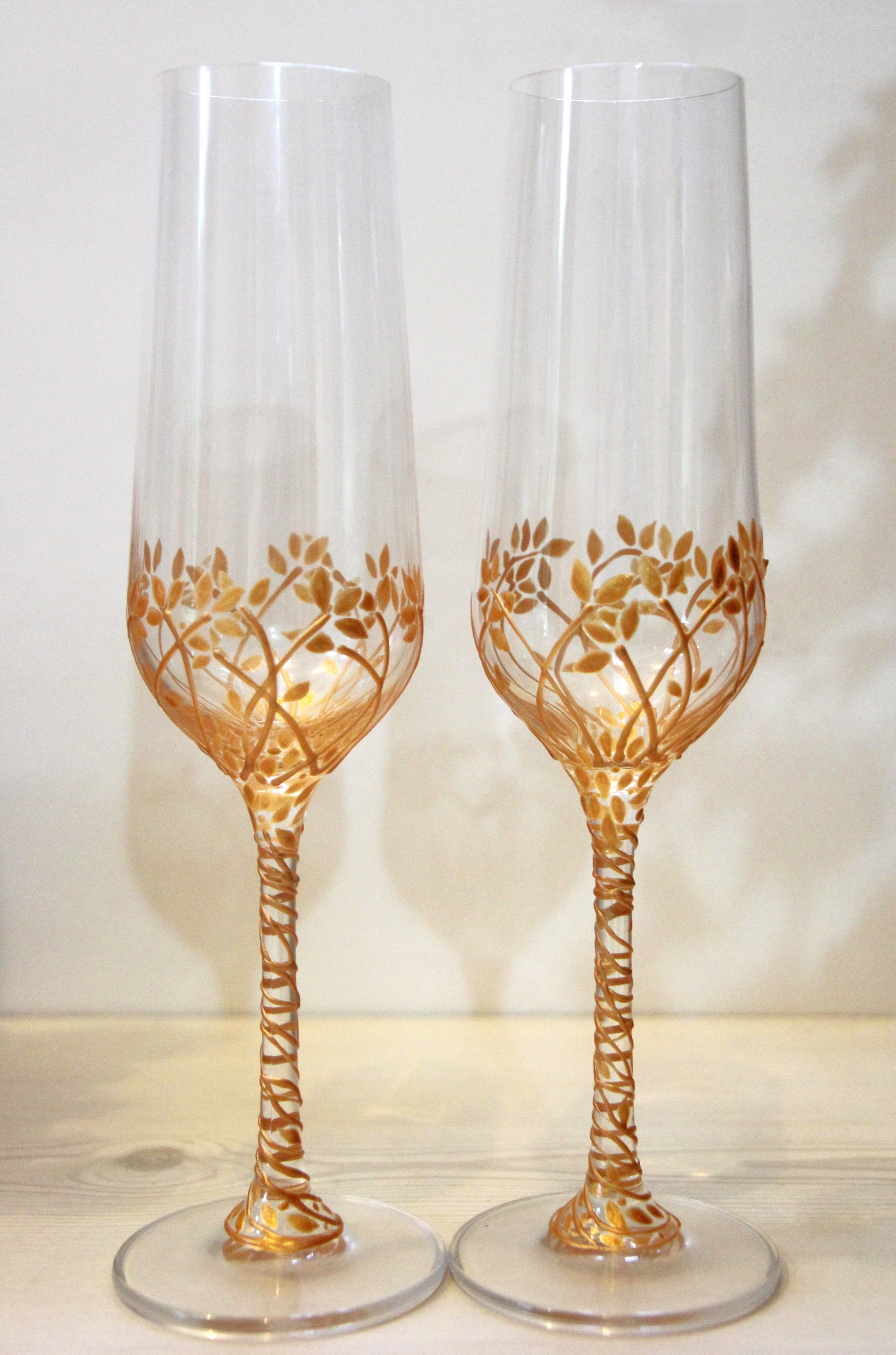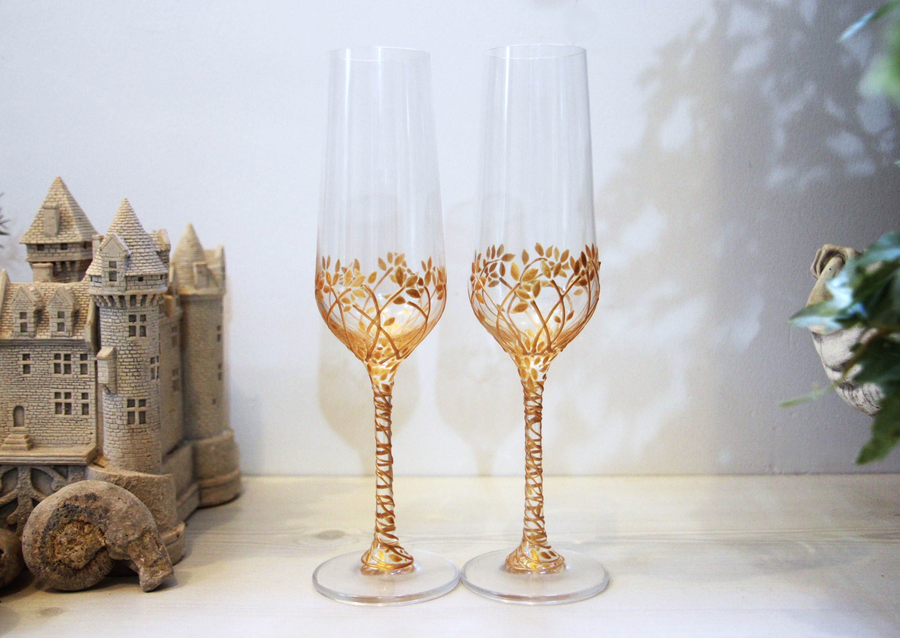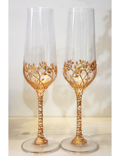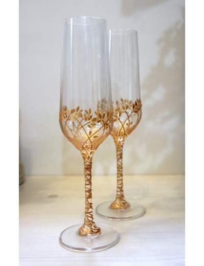 Duo de deux jolies flutes au coloris or représentant un arbre et son joli feuillage doré.
