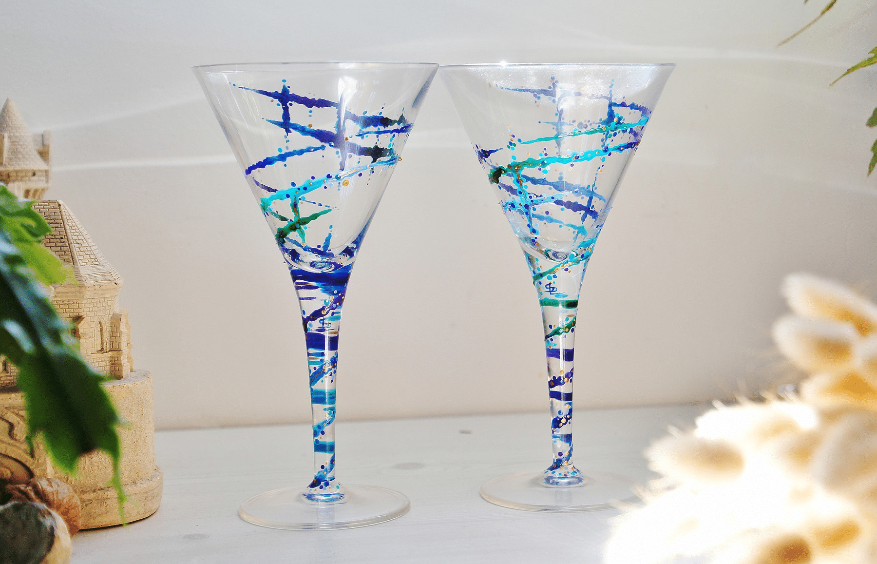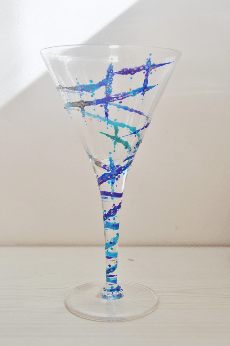 Lot De Deux Verres À Cocktail En Cristal De Bohème Peints À La Main Dans Les Coloris Bleus Verts Décorés De Volutes Verres Personnalisables