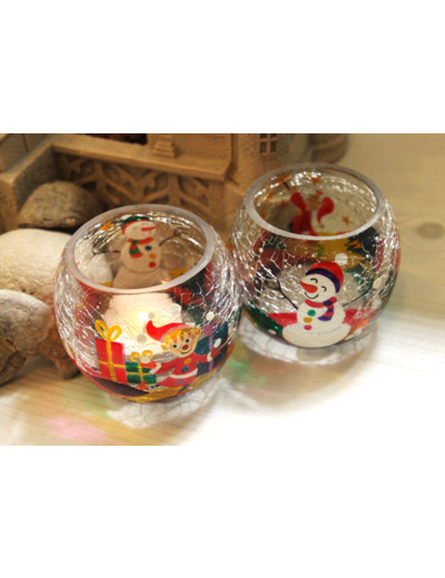 Pack : Photophore en verre craquelé peint à la main sur le thème de Noël - Peuvent être vendus par lot de deux