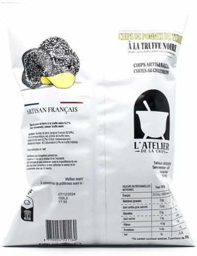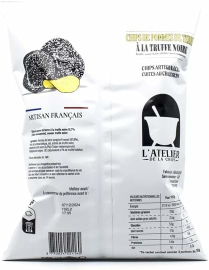 Ces Chips Artisanales de Pomme de Terre à la Truffe Noire cuites au chaudron offrent une expérience gustative raffinée et élégante, parfaites pour les amateurs de saveurs sophistiquées.