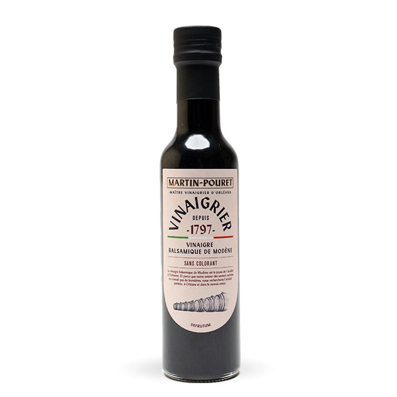 Ce balsamique est obtenu à partir de moût de raisin cuit, mûri par une lente acétification dans les respect de la tradition ancestrale d’élaboration, ce qui lui donne cette saveur douce et aigre bien équilibré.