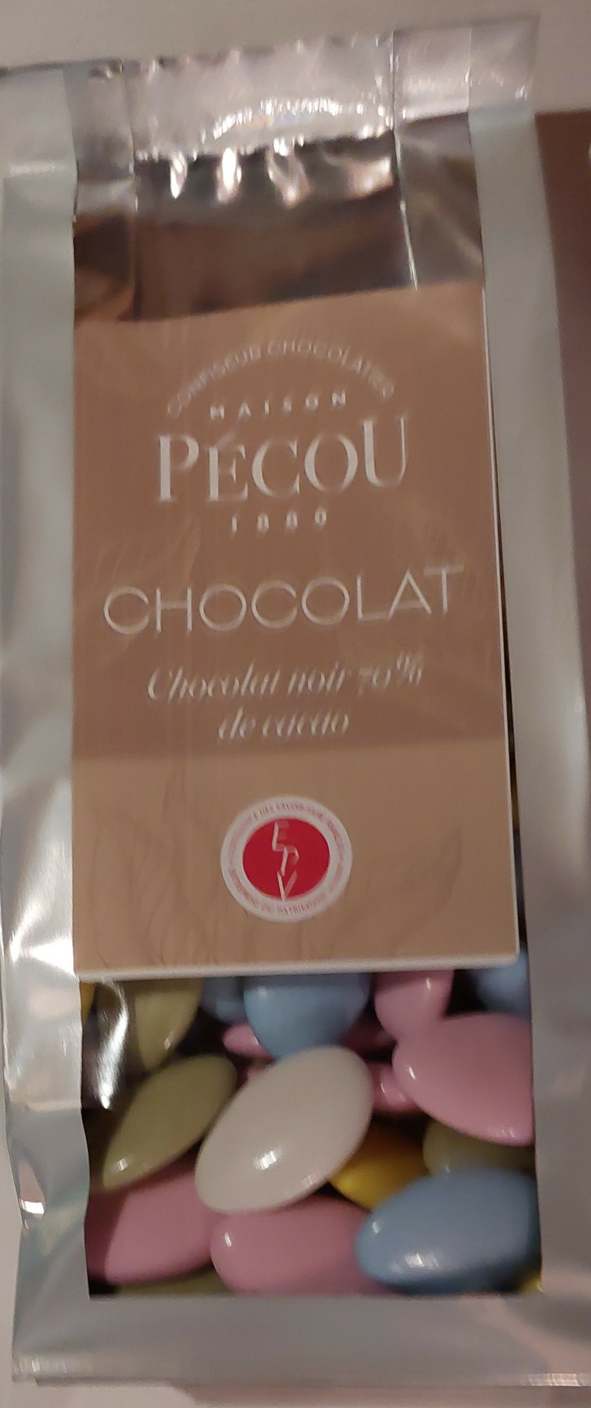 Fondée en 1880, la maison Pécou vous propose de délicieuses Dragées Chocolat : un cœur riche en cacao 70% enrobé d’une délicate pellicule de sucre.