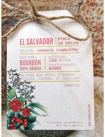 Terre de volcans, au bord de l’océan Pacifique, El Salvador offre un terroir d’exception pour les plantations de café. Morpho Café est une entreprise familiale, spécialisée dans les cafés fins de ce petit pays d’Amérique latine, en agriculture raisonnée. La cueillette de la cerise murie à point se fait à la main entre Décembre et Mars. Les cerises suivent par la suite le process dit "Honey", c'est-à-dire que, après cueillette, seule la peau est retirée. Le grain conserve le mucilage (pulpe) et est mis directement à sécher, ce qui va permettre au grain de capter tous les sucres présents dans le mucilage. Encore une fois, ce traitement permet d'éviter l'utilisation et le gaspillage de nombreux litres d'eau. Ce process donne au café des saveurs plus sucrée, des notes gourmandes, de caramel, de cassonade et une légère pointe d'acidité. Un café d'intensité moyenne, rond et moelleux.