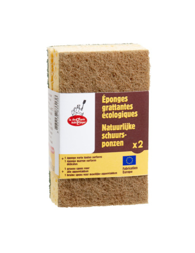 1 éponge verte + 1 éponge marron à récurer en matières recyclées
