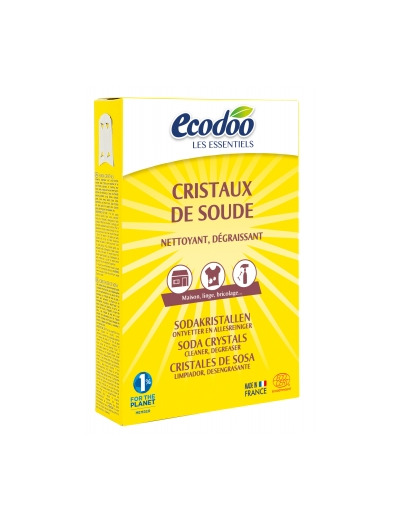 nettoyant multi-fonctions, dégraissant puissant, le produit Cristaux de soude 500gr Ecodoo permet d'augmenter l'efficacité des lessives.
