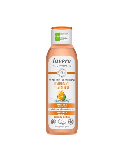 Sa formule biodégradable, sans colorants ni conservateurs artificiels, prend soin de vous et votre corps. Grâce à sa texture sous forme de gel son application est facilitée. Son PH neutre n'agresse aucunement votre peau, qu'elle soit sèche ou sensible. La combinaison de l'orange et de la menthe bio vous garantit un effet immédiat. Laissez-vous d'abord envelopper par la douceur de l'orange et sentez les tensions disparaitre. Percevez ensuite l'effet stimulant et rafraichissant de la menthe. Après une journée difficile ou pour apprécier un moment simple du quotidien, la douche soin revitalisante 250 ml Lavera est un véritable cocktail dédié à votre bien-être.