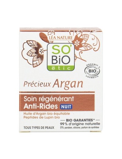 Soin régénérant Anti Rides nuit Précieux Argan 50ml So Bio Etic