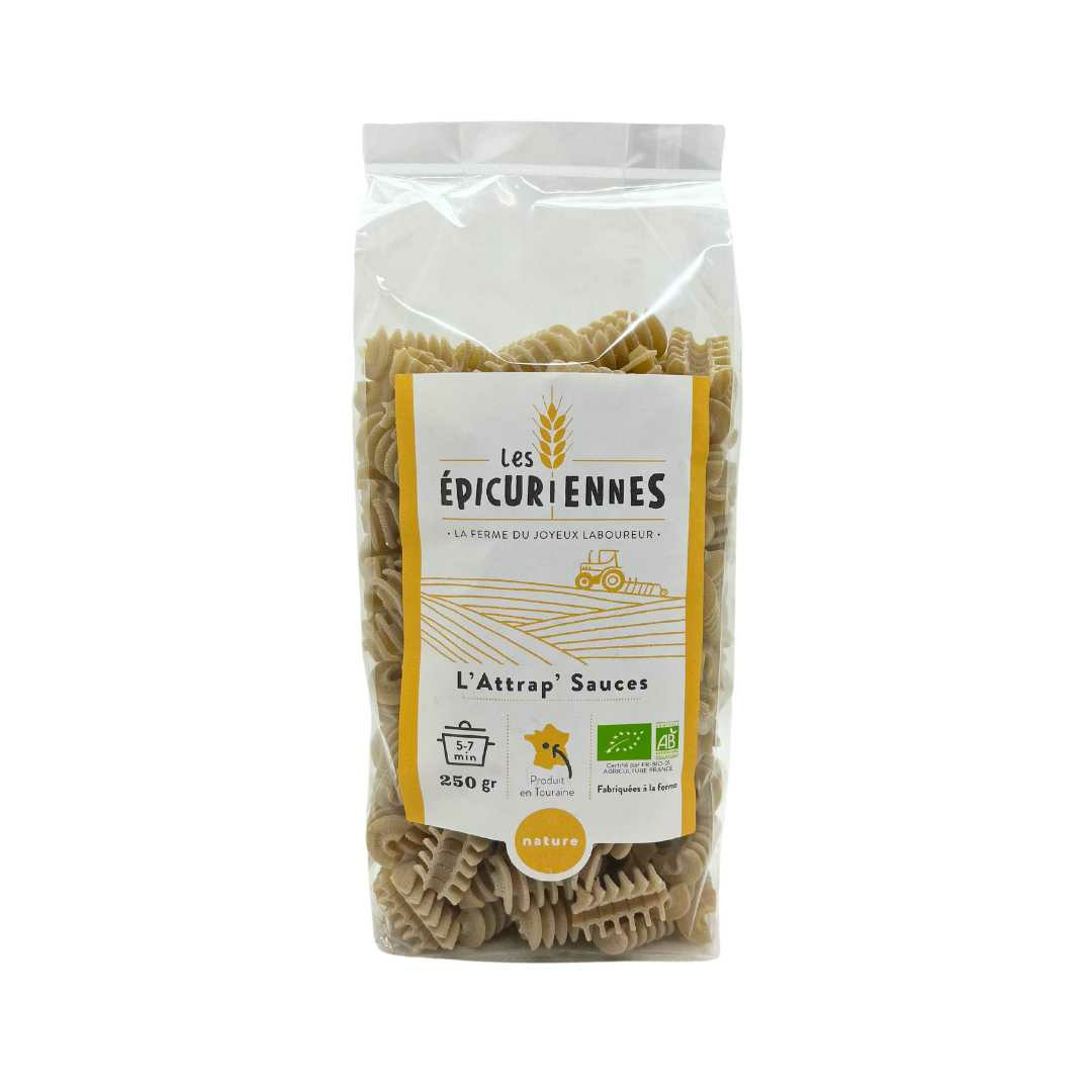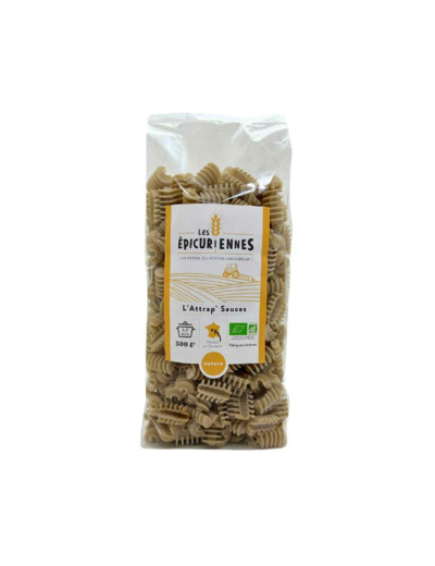 Découvrez les Pâtes semi-complètes L'Attrap'Sauces , leur forme unique permet de capturer et de retenir généreusement la sauce.