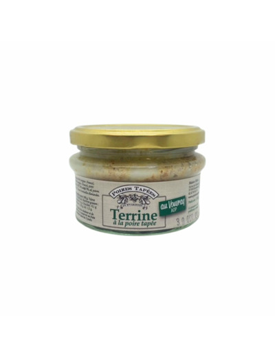 Ingrédients : gorge de porc 58%(origine France), aiguillettes de canard 13%(origine France), poire tapée 11%, vin de Vouvray AOP10%,oeufs 7%, sel, poivre.