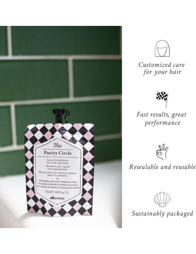 The Purity Circle est un masque purifiant pour cheveux. Il est l'allié parfait pour détoxifier le cuir chevelu et éliminer les impuretés dues à la pollution, à la poussière et aux métaux lourds. Sa formule contient du charbon de bambou qui détoxifie le cuir chevelu et les cheveux, et du thé Matcha riche en antioxydants. Il est idéal pour les cheveux abîmés par les facteurs environnementaux. Ce masque détoxifiant revitalise et purifie les cheveux fatigués pour obtenir une chevelure plus saine. En l'appliquant ponctuellement, vous offrez à vos cheveux et à votre cuir chevelu la cure detox idéale
