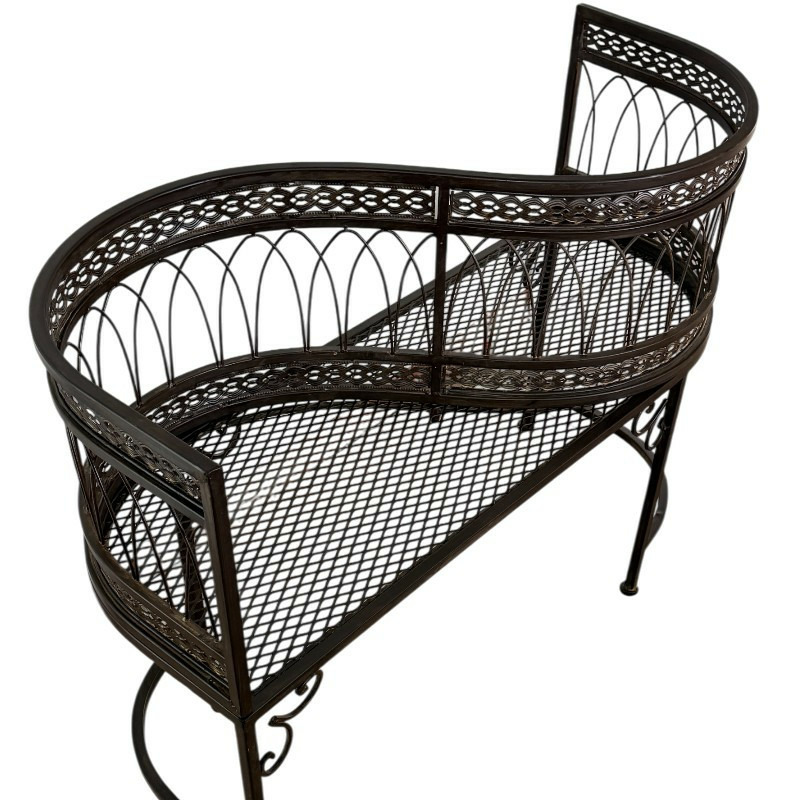 Cette caractéristique est essentielle pour un meuble destiné à l'extérieur. Le fer forgé est un matériau connu pour sa résistance exceptionnelle aux intempéries, qu'il s'agisse de la pluie, du vent ou du soleil, garantissant que ce banc conservera sa beauté et sa solidité pendant de nombreuses années.