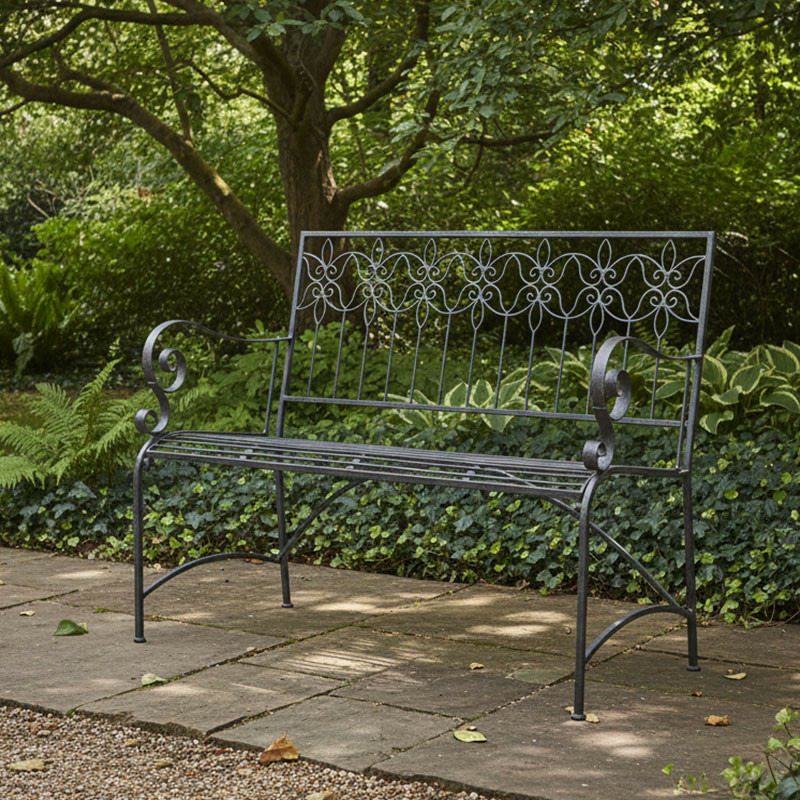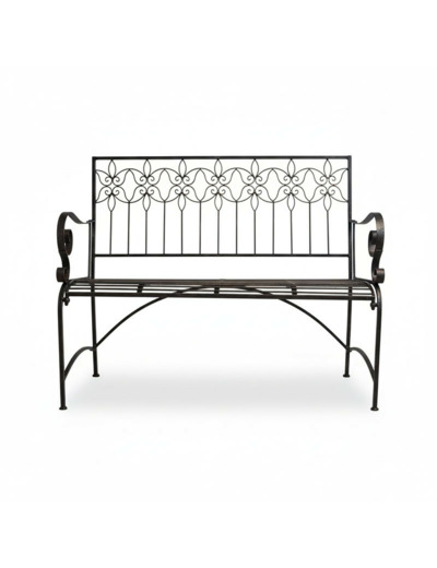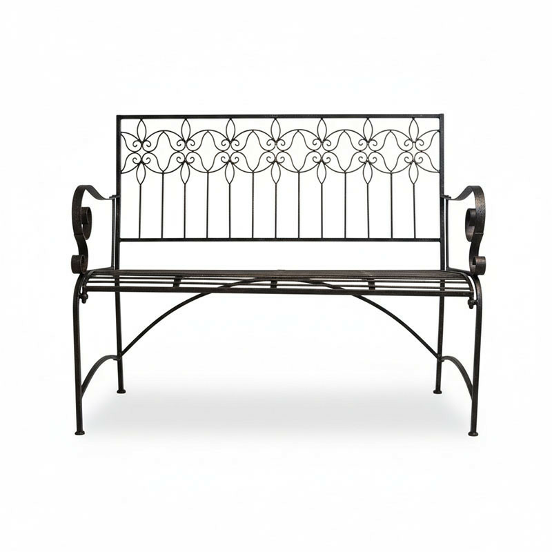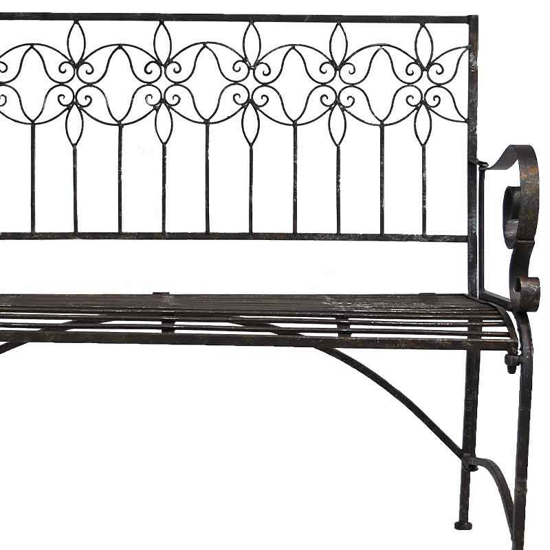 Design raffiné : Son dossier haut est orné de volutes et de motifs fleur de lys délicats, offrant un jeu d'ombres élégant dès que le soleil se montre.