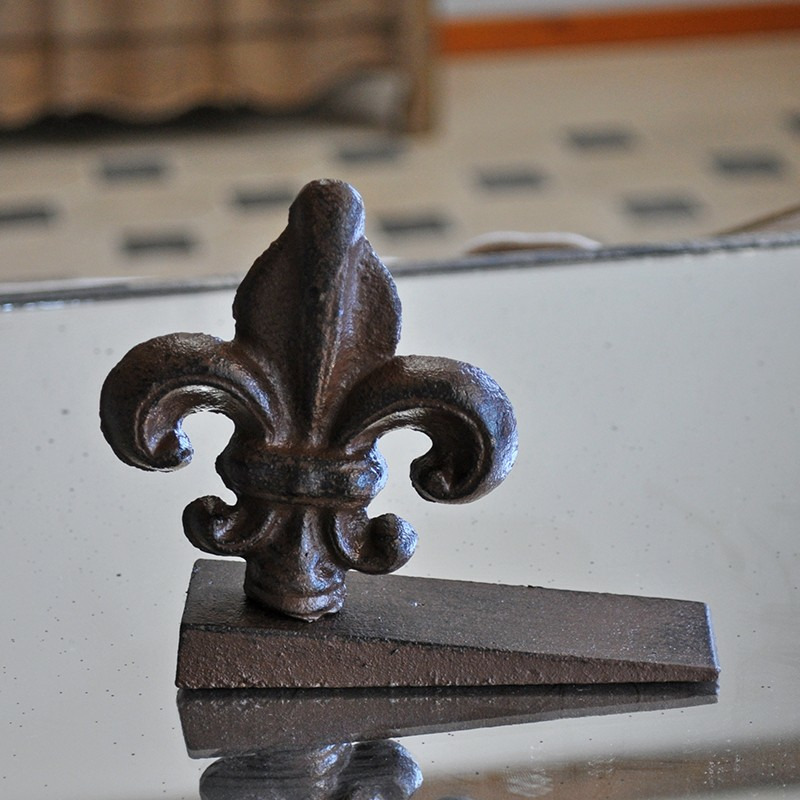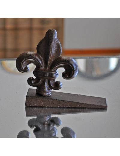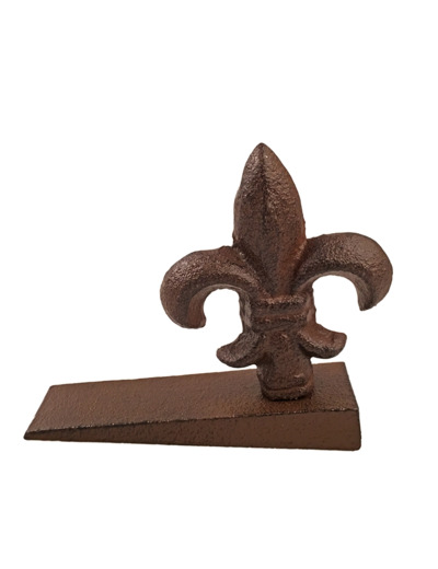 Ravissant bloque porte orné d'une fleur de Lys en fonte patinée marron.