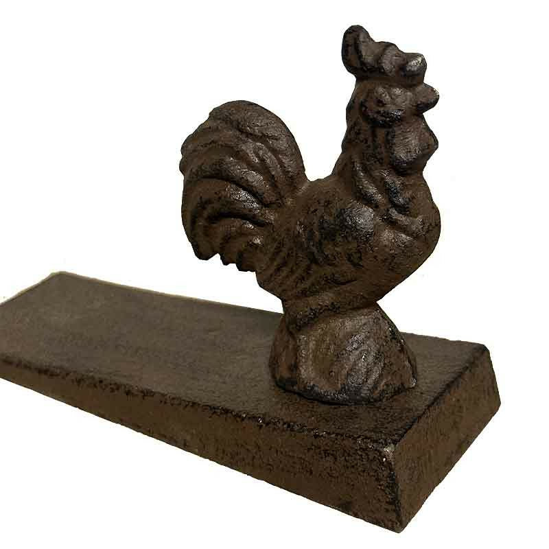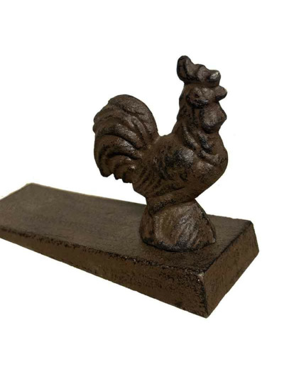 Très élégants bloque porte Coq en fonte avec lui fini les portes qui claques. L'article déco pratique et bucolique;