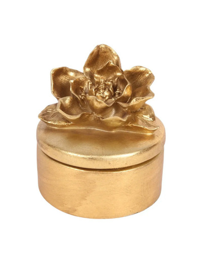 Offrez-vous cet objet qui allie l'utilité au plaisir des yeux. La finition dorée et la fleur sculptée apportent une note de glamour et de raffinement à n'importe quelle pièce, transformant un simple rangement en un point focal élégant.