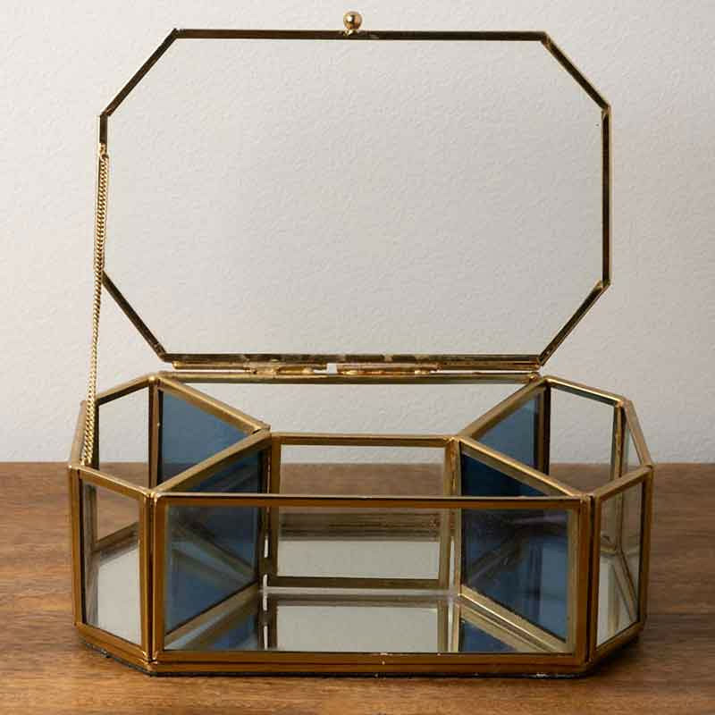 Vous pouvez poser cette belle boîte en verre bleuté, sur votre coiffeuse ou dans votre salle de bain, elle vous permettra de ranger en délicatesse vos bijoux.