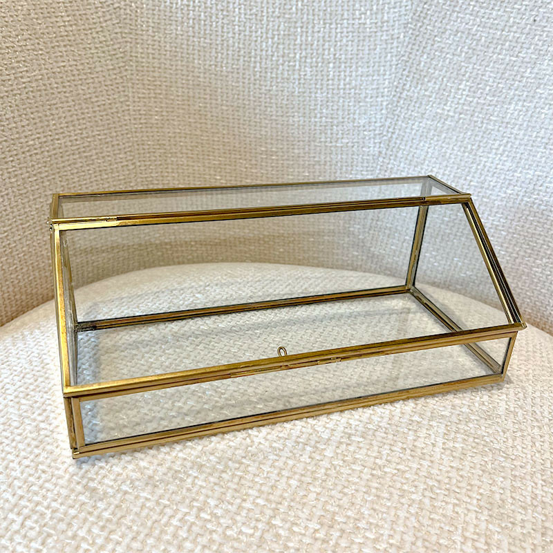 Cette boite en verre décorative en verre et laiton doré est l'accessoire indispensable pour une décoration raffinée.