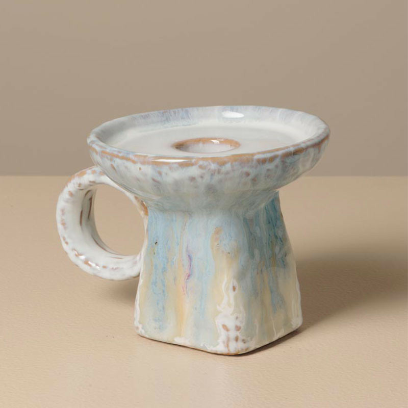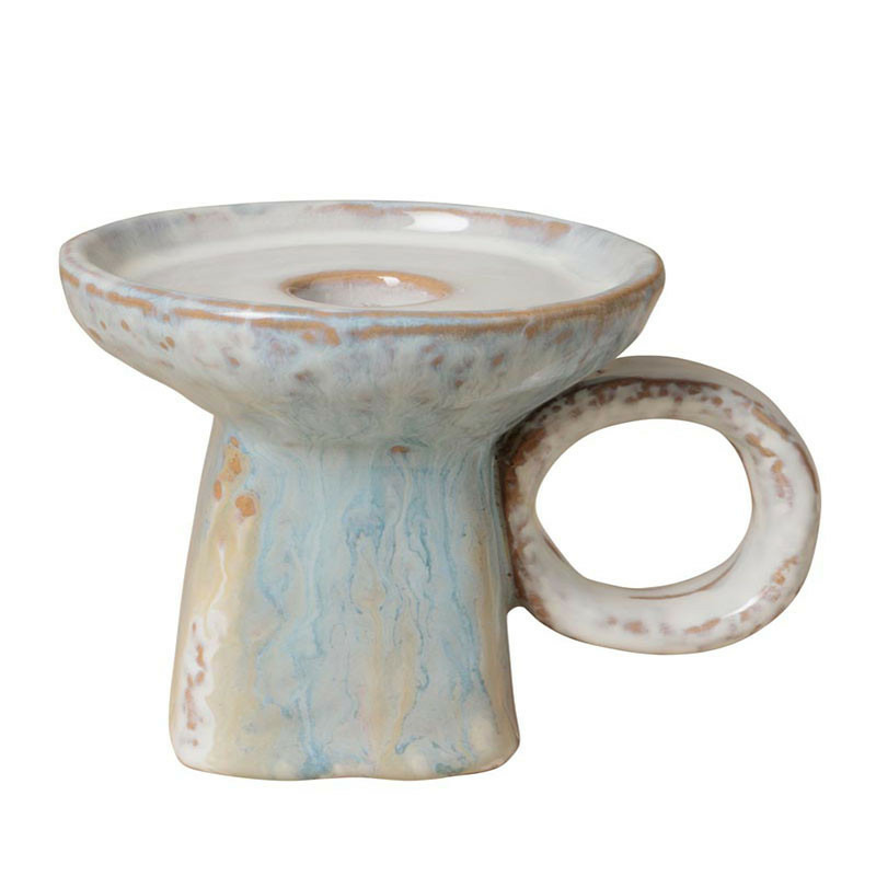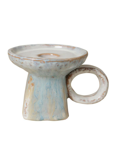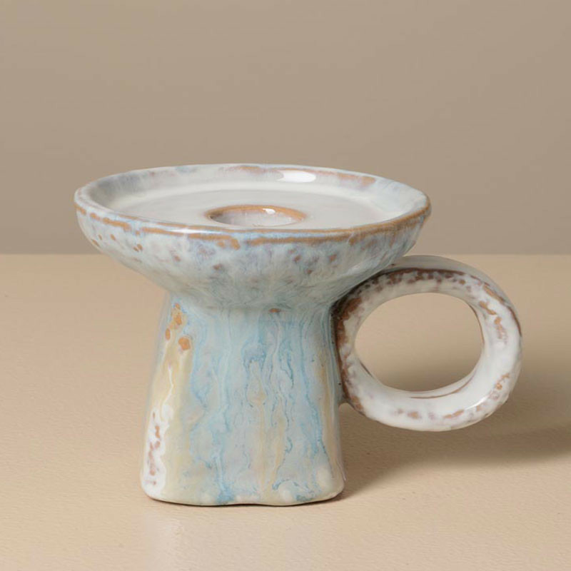 Émail Réactif Captivant : Comme pour le reste de la gamme, le mélange de bleu azur et de nuances crème crée des effets de texture uniques sur chaque pièce. Sa brillance capture la lumière, même lorsqu'il n'est pas allumé.